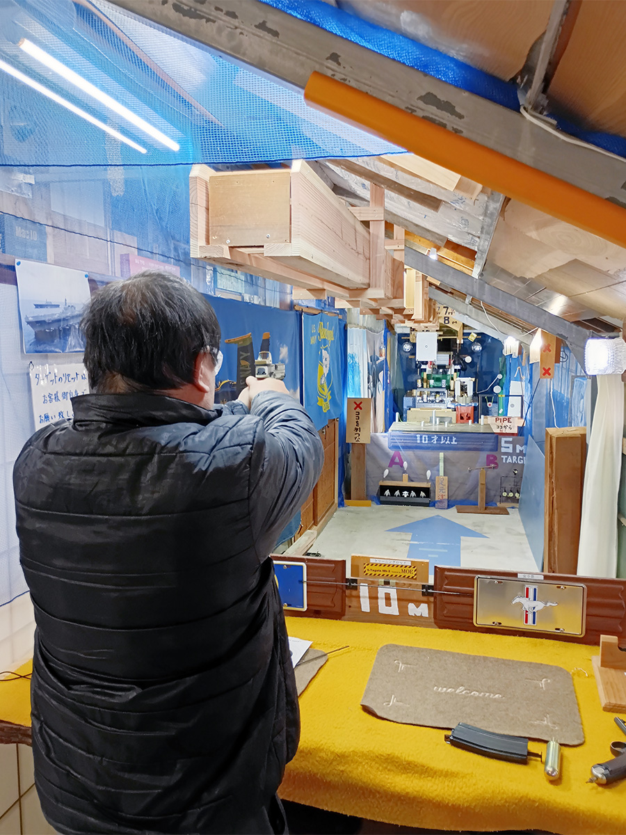 BB弾射撃場は屋外ロングレンジ23メートル、屋内レンジ10メートルがあります。屋内レンジでは幅2メートルではあります。さらに屋外レンジ特設で、30メートル、35メートルを可能としました。